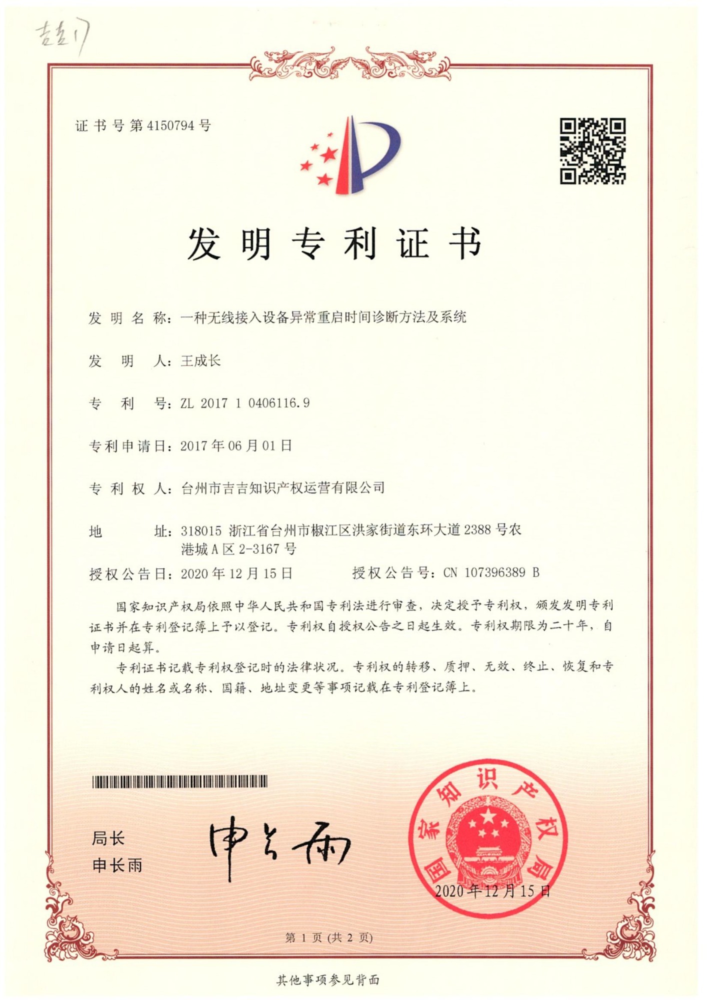 一種無線接入設(shè)備異常重啟時(shí)間診斷方法及系統(tǒng)專利證書