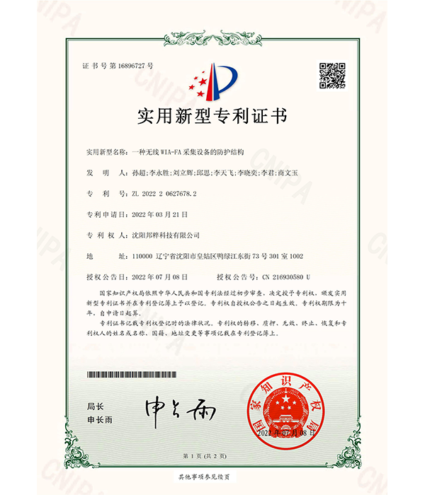 實(shí)用新型專利證書