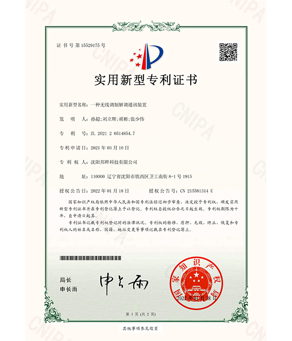 實(shí)用新型專利證書